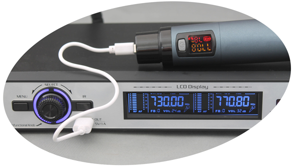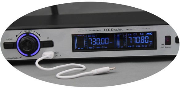 ●本機(jī)使用635.0~699.7MHZ頻率,雙通道具有80M超寬帶寬,每通道間隔400K,與傳統(tǒng)麥克風(fēng)使用50M帶寬250K通道間隔相比,具有更好的搞干擾能力!傳統(tǒng)250K通道間隔的麥克風(fēng),六臺疊機(jī)同時(shí) 使用時(shí),就或多或少的相互干擾,產(chǎn)生竄頻竄音雜音的現(xiàn)象,嚴(yán)重影響使用!本機(jī)可以20套疊機(jī)同時(shí)使用,不會竄頻竄音。 ●本機(jī)使用電子音量調(diào)節(jié),音量大小可通過液晶顯示屏數(shù)字顯示,與傳統(tǒng)的旋鈕調(diào)節(jié)音量麥克風(fēng)相比,具有調(diào)節(jié)更精確、一致性更好。用旋鈕調(diào)節(jié)音量可能會使用左右麥克風(fēng)音量大小不致,一臺與另 一臺麥克風(fēng)之間音量大小不致等。 ●本機(jī)具有按鍵鎖定功能,當(dāng)設(shè)置好頻率和音量等參數(shù)后,可以一鍵鎖定按鍵(也可一鍵解鎖),有效防止在使用過程中,誤觸按鍵,造成頻率更換使麥克風(fēng)沒聲音的情況。 ●本機(jī)具有高音衰減和提升功能,當(dāng)使用者認(rèn)為麥克風(fēng)高音太多時(shí),可以衰減高音;反之,當(dāng)使用者認(rèn)為高音不夠明亮?xí)r,可以提升高音。該功能可以讓本機(jī)適應(yīng)性更好,可以更好的適應(yīng)不同的音響 設(shè)備和使用者的愛好。 ●本機(jī)具有六段調(diào)節(jié)移頻防嘯叫功能,可以有效防止嘯叫,提升音量。 ●本機(jī)具有掃描干凈頻率功能。在無線信號太多的環(huán)境中(如手機(jī)多、許多麥克風(fēng)一起使用等),人工調(diào)節(jié)頻率很難找到?jīng)]有干擾的頻率來使用。使用該功能可以一鍵掃描找出當(dāng)前環(huán)境中,未被使用或干擾較少的頻率。讓麥克風(fēng)不被干擾,有效防止竄頻竄音雜音等情況地發(fā)生。