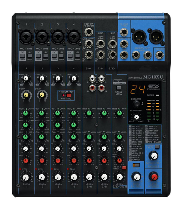 12通道調(diào)音臺(tái) ● 最多6個(gè)話筒 / 12個(gè)線路輸入 (4個(gè)單聲道 + 4個(gè)立體聲) ● 2編組母線 + 1立體聲母線 ● 2 AUX (包括FX) ●“D-PRE”話放,帶有倒向晶體管電路。 ● 單旋鈕壓縮器 ● 高級(jí)效果器:SPX,含24組預(yù)置效果器 ● 24-bit/192kHz 2進(jìn)/2出 USB音頻功能 ● 含Cubase AI DAW下載版軟件 ● 單聲道輸入通道上的PAD開(kāi)關(guān) ● +48V幻象供電 ● XLR平衡輸出 ● 世界通用的內(nèi)部全局供電 ● 可選購(gòu)安裝套件 RK-MG12 ● 金屬機(jī)身 外觀尺寸:308×118×422mm 凈重:4.2kg