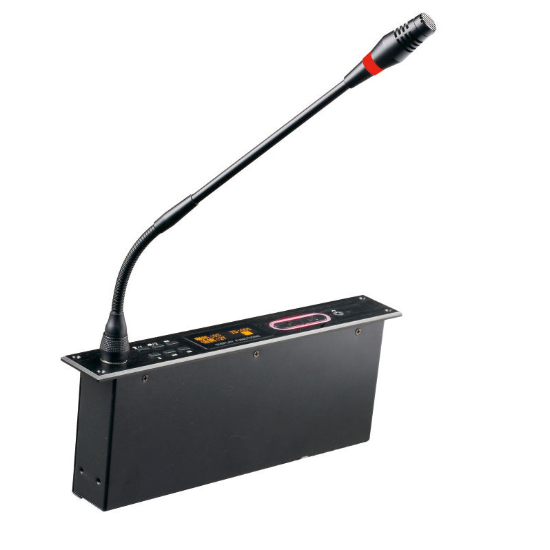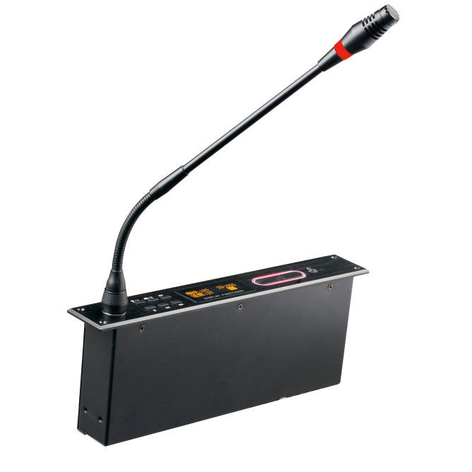 ◆ 符合IEC60194、GBT15381-94國際標(biāo)準(zhǔn),高強(qiáng)度鋅合金壓鑄,外觀大氣沉穩(wěn)。 ◆ 集發(fā)言、投票、按鍵簽到、表決功能于一體的會議發(fā)言單元。 ◆ 帶雙色指示燈環(huán)(紅色/白色),發(fā)言為紅色·咪頭外殼根據(jù)聲學(xué)原理設(shè)計,配合超指向性電容咪實現(xiàn)高度的人聲還原,帶聲頻啟動功能,發(fā)言時話筒自動打開。 ◆ 系統(tǒng)單元熱插拔功能,超強(qiáng)的抗手機(jī)干擾能力。 ◆ 具有消咳鍵,當(dāng)發(fā)言人員咳嗽時,可暫時關(guān)閉麥克風(fēng),防止咳嗽聲傳到會場。 ◆ 具有話筒開關(guān)鍵,6個投票表決鍵,服務(wù)呼叫功能幫助鍵,中文簡體、繁體、英文菜單切換按鍵。 ◆ 高精度超亮度128*64LCD液晶屏,清晰顯示單元工作狀態(tài),面板帶耳機(jī)輸出連接接口。 ◆ 本會議單元的ID號碼、申請發(fā)言人數(shù)、表決結(jié)果、簽到人數(shù)以及各種操作信息等內(nèi)容。 ◆ 單元由主機(jī)供電,輸入電壓為24V,屬于安全電壓。 ◆ 主席單元具有優(yōu)先鍵、批準(zhǔn)鍵。支持連接電腦將代表話筒設(shè)置VIP話筒,VIP不受主席控制,連接位置不受限制。"手拉手"或"T型"連接模式